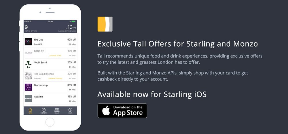 Tail kullanıcıları, banka hesaplarını uygulamayla eşleştirmek için tıpkı Facebook ya da Twitter ile web sitelerine üye olmaya benzer biçimde, kolay ve tek tıkla tamamlanan bir kayıt sistemi ile karşılaşıyorlar. Starling bankasının müşterileri, sadece tek bir tıklama ile hesaplarını Tail altyapısına bağlayarak anında indirimlerden faydalanmaya başlıyorlar.