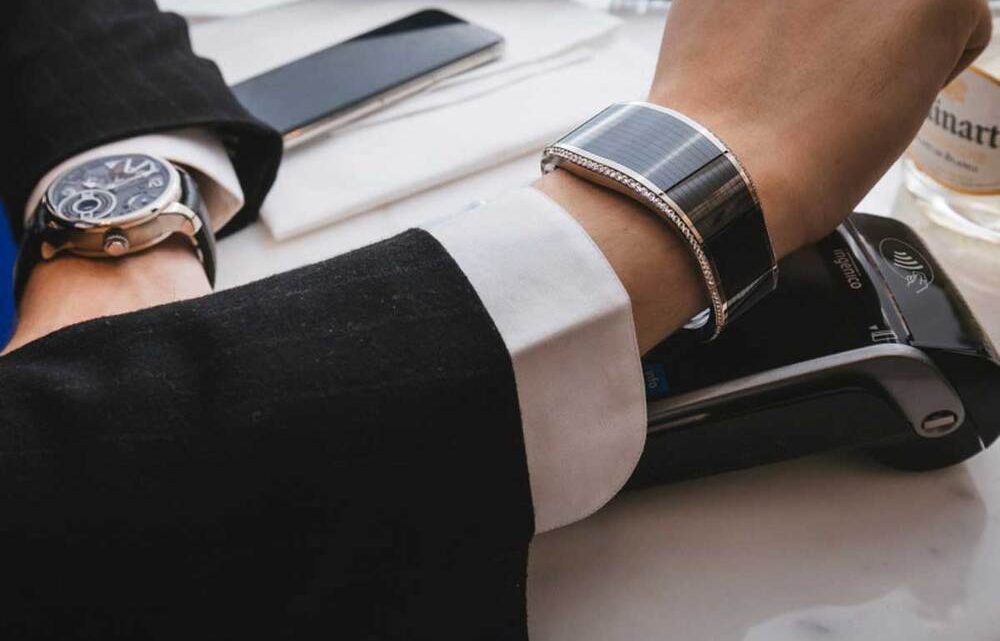 Cenevre merkezli Armillion firması, 1 milyon sterlin harcama limiti olan pırlanta kaplı temassız ödeme bilekliğini piyasaya sürdü.