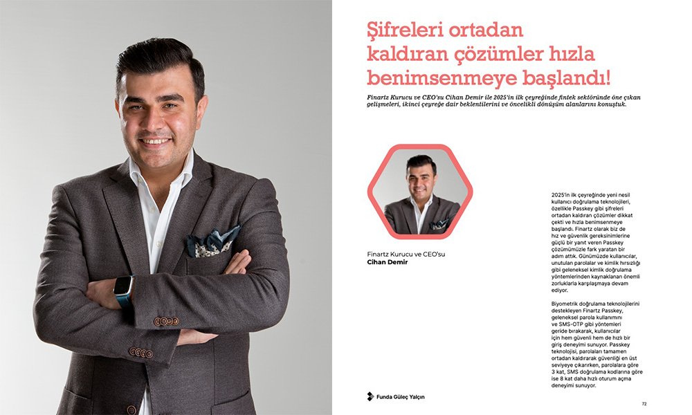 2025’in ilk çeyreğinde yeni nesil kullanıcı doğrulama teknolojileri, özellikle Passkey gibi şifreleri ortadan kaldıran çözümler dikkat çekti ve hızla benimsenmeye başladı. Finartz olarak biz de hız ve güvenlik gereksinimlerine güçlü bir yanıt veren Passkey çözümümüzle fark yaratan bir adım attık. Günümüzde kullanıcılar, unutulan parolalar ve kimlik hırsızlığı gibi geleneksel kimlik doğrulama yöntemlerinden kaynaklanan önemli zorluklarla karşılaşmaya devam ediyor. Biyometrik doğrulama teknolojilerini destekleyen Finartz Passkey, geleneksel parola kullanımını ve SMS-OTP gibi yöntemleri geride bırakarak, kullanıcılar için hem güvenli hem de hızlı bir giriş deneyimi sunuyor. Passkey teknolojisi, parolaları tamamen ortadan kaldırarak güvenliği en üst seviyeye çıkarırken, parolalara göre 3 kat, SMS doğrulama kodlarına göre ise 8 kat daha hızlı oturum açma deneyimi sunuyor.