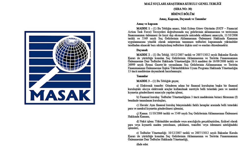 Söz konusu düzenleme, Malî Eylem Gücünün (FATF) tavsiyeleri doğrultusunda suç gelirlerini aklama, terörün finansmanını engelleme ve kayıt dışı ekonomi ile mücadele çerçevesinde işlem, analiz ve hâlihazırdaki uygulama süreçlerinde sıkı tedbirleri ortaya koyuyor.