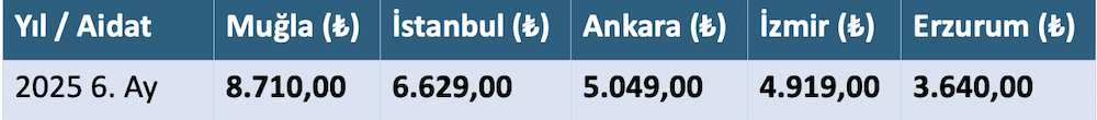 Rapora göre, 2025 yılında ortalama aidatların en yüksek olduğu il Muğla oldu ve ortalama 8.710 TL seviyesine ulaştı. Muğla’yı sırasıyla 6.629 TL ile İstanbul, 5.049 TL ile Ankara ve 4.919 TL ile İzmir takip etti. Listenin sonunda ise en düşük aidatların görüldüğü şehirler Uşak (1.061 TL), Hatay (1.246 TL), Ordu (1.287 TL), Aksaray (1.306 TL) ve Mersin (1.455 TL) olarak sıralandı. Bu tablo, kentler arası yaşam maliyetlerindeki büyük farklılıkları ve özellikle büyükşehirlerdeki hane halkı bütçeleri üzerindeki aidat baskısını net bir şekilde ortaya koyuyor.
