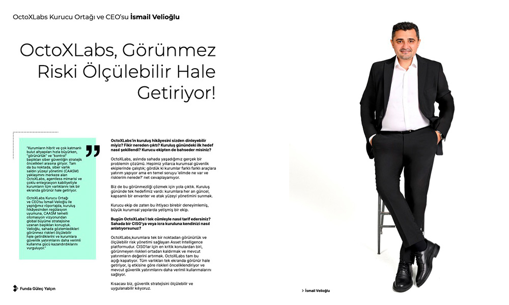 OctoXLabs Kurucu Ortağı ve CEO’su İsmail Velioğlu ile yaptığımız röportajda, kuruluş hikâyesinden regülasyon uyumuna, CAASM temelli otomasyon vizyonundan global büyüme stratejisine uzanan başlıkları konuştuk. Velioğlu, sahada gözlemledikleri görünmez riskleri ölçülebilir hale getirdiklerini ve kurumlara güvenlik yatırımlarını daha verimli kullanma gücü kazandırdıklarını vurguluyor.”
