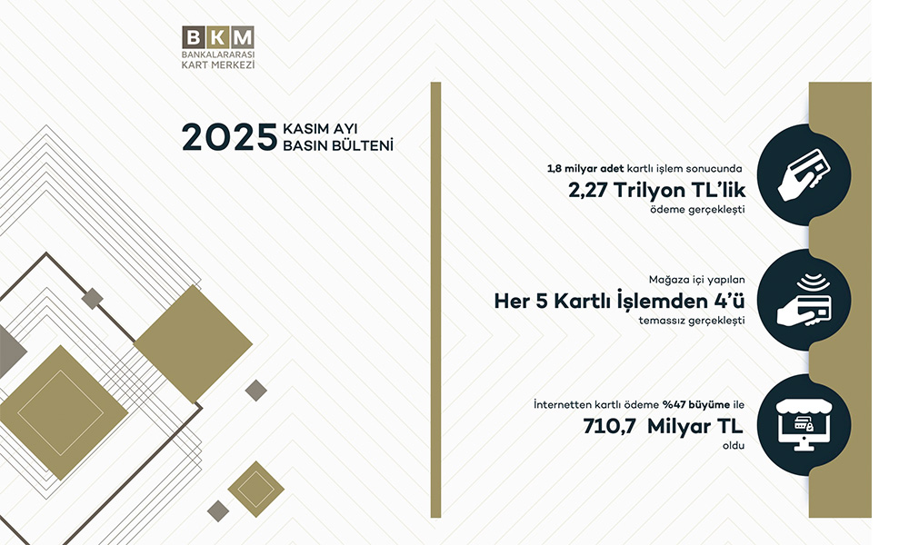 Bankalararası Kart Merkezi, 2025 yılı Kasım ayına ilişkin kartlı ödeme verilerini kamuoyuyla paylaştı. Açıklanan rakamlar, Türkiye’de dijital ödeme alışkanlıklarının hız kesmeden derinleştiğini ve temassız ile internetten yapılan ödemelerin toplam hacim içindeki payını artırmaya devam ettiğini ortaya koydu.