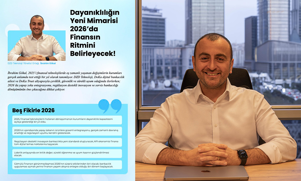 İbrahim Gökal, 2025’i finansal teknolojilerde eş zamanlı yaşanan değişimlerin kurumları gerçek anlamda test ettiği bir yıl olarak tanımlıyor. DZD Teknoloji, DoKa dijital bankacılık ailesi ve DoKa Trust altyapısıyla çeviklik, güvenlik ve sürekli uyum odağında ilerlerken; 2026’da yapay zeka entegrasyonu, regülasyon destekli inovasyon ve servis bankacılığı dönüşümünün öne çıkacağına dikkat çekiyor.