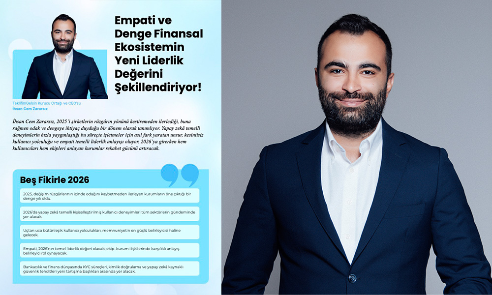 İhsan Cem Zararsız, 2025’i şirketlerin rüzgârın yönünü kestiremeden ilerlediği, buna rağmen odak ve dengeye ihtiyaç duyduğu bir dönem olarak tanımlıyor. Yapay zekâ temelli deneyimlerin hızla yaygınlaştığı bu süreçte işletmeler için asıl fark yaratan unsur, kesintisiz kullanıcı yolculuğu ve empati temelli liderlik anlayışı oluyor. 2026’ya girerken hem kullanıcıları hem ekipleri anlayan kurumlar rekabet gücünü artıracak.