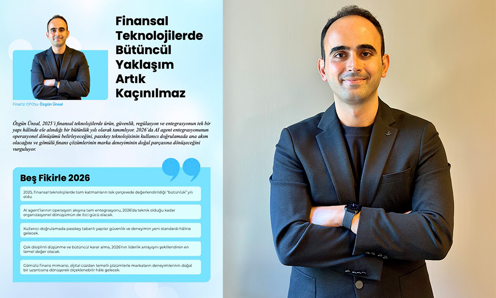 Özgün Ünsal, 2025’i finansal teknolojilerde ürün, güvenlik, regülasyon ve entegrasyonun tek bir yapı hâlinde ele alındığı bir bütünlük yılı olarak tanımlıyor. 2026’da AI agent entegrasyonunun operasyonel dönüşümü belirleyeceğini, passkey teknolojisinin kullanıcı doğrulamada ana akım olacağını ve gömülü finans çözümlerinin marka deneyiminin doğal parçasına dönüşeceğini vurguluyor.
