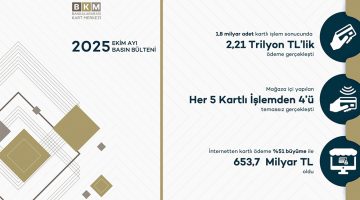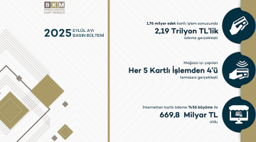 Bankalararası Kart Merkezi (BKM), 2025 yılının son ayına ilişkin kartlı ödeme verilerini kamuoyuyla paylaştı. BKM 2025 Aralık verilerine göre Türkiye’de kartlı ödemeler %48 artarak 2,5 trilyon TL’ye ulaştı.