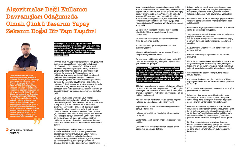 Voya Digital Kurucusu Adem Ay ile Fintechtime Şubat 2026 sayısı “2025’te yapay zekayı nasıl kullandık, 2026’da hayatımızı nasıl yönetecek?” dosya konusu kapsamında gerçekleştirdiğimiz röportaj yayında.