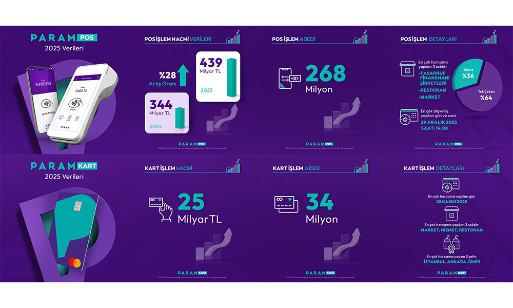 Bütünleşik finans hizmetleri sunan Param, 2025 yılı boyunca sergilediği işlem hacmi performansını ve yıl sonu verilerini açıkladı. Yıl boyunca stratejik iş ortaklıkları ve teknoloji odaklı yatırımlarıyla öne çıkan Param, ParamPOS ve ParamKart ile istikrarlı büyüme performansını 2025 yılında da korumayı başardı.