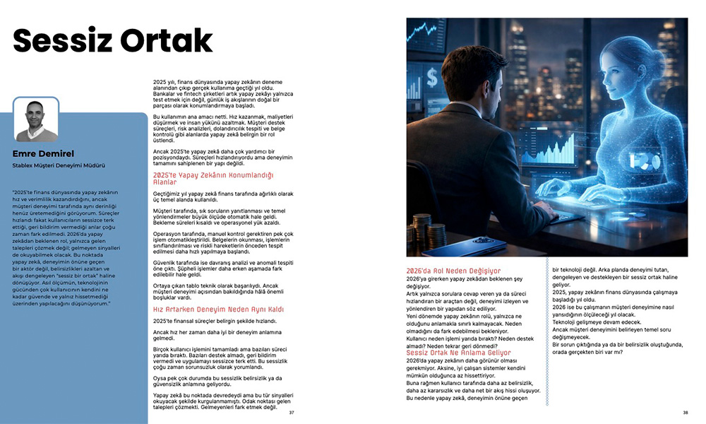 Stablex Müşteri Deneyimi Müdürü Emre Demirel, Fintechtime Şubat 2026 sayısı için yazdı “Sessiz Ortak”.
