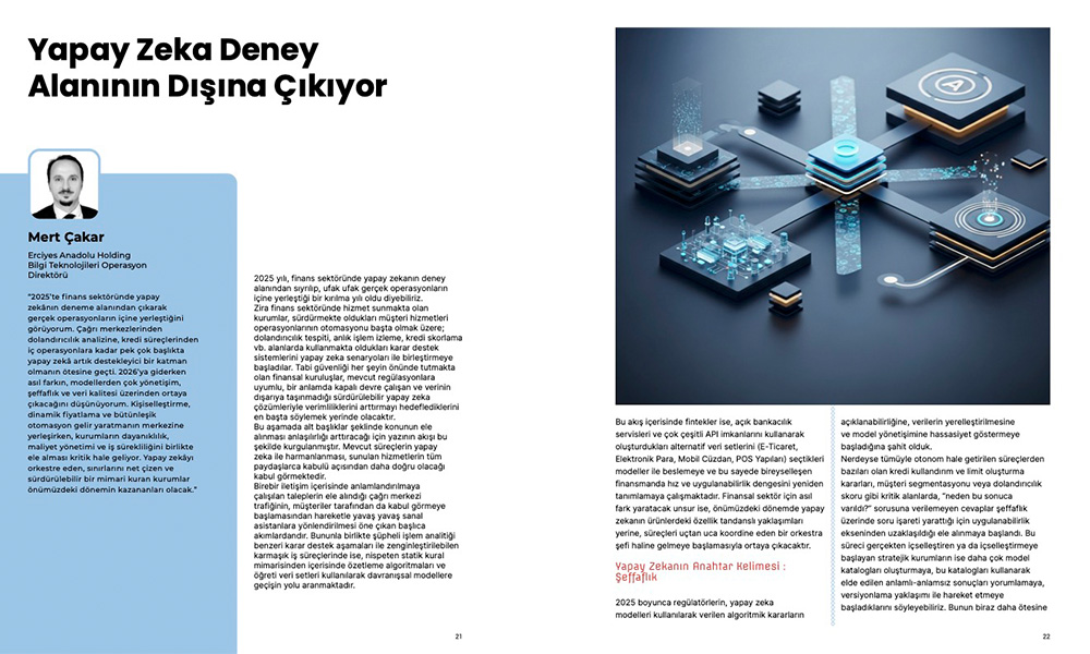 Erciyes Anadolu Holding Bilgi Teknolojileri Operasyon Direktörü Mert Çakar, Fintechtime Şubat 2026 sayısı için yazdı “Yapay Zeka Deney Alanının Dışına Çıkıyor”.
