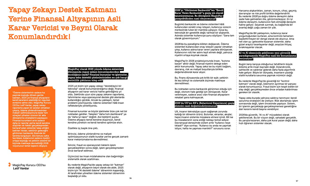 MagicPay Kurucu CEO’su Latif Vardar ile Fintechtime Şubat 2026 sayısı “2025’te yapay zekayı nasıl kullandık, 2026’da hayatımızı nasıl yönetecek?” dosya konusu kapsamında gerçekleştirdiğimiz röportaj yayında.