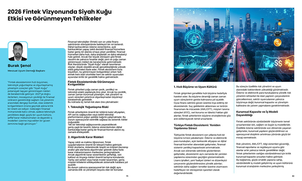 Mevzuat Uyum Derneği Başkanı Burak Şenol, Fintechtime Nisan sayısı için yazdı “2026 Fintek Vizyonunda Siyah Kuğu Etkisi ve Görünmeyen Tehlikeler”.