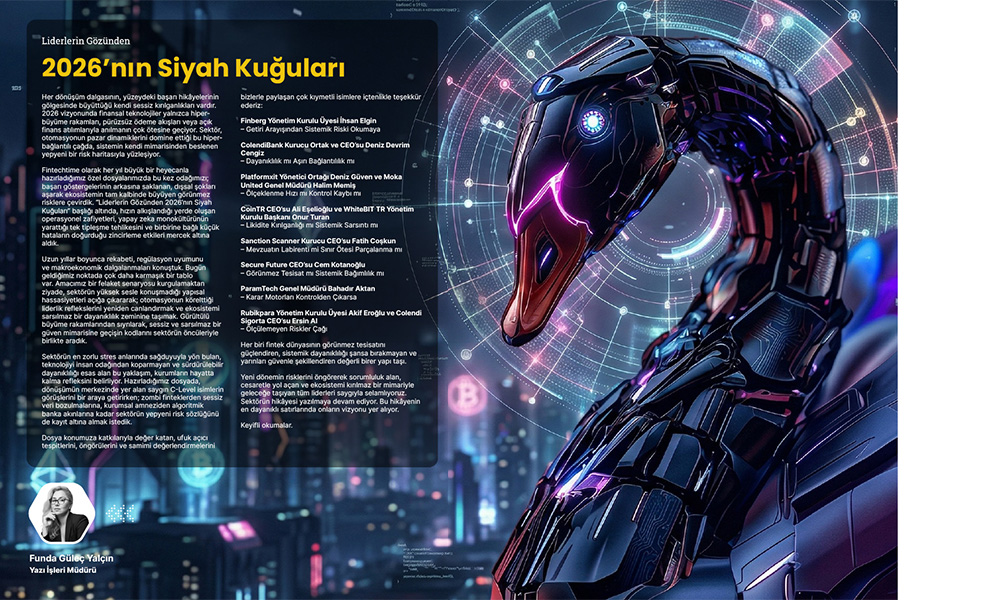 Fintechtime Nisan sayısında, başarı göstergelerinin ötesine geçerek ekosistemin merkezinde büyüyen görünmez risklere odaklandık. “Liderlerin Gözünden 2026’nın Siyah Kuğuları” dosyamızda; hızın yarattığı operasyonel zafiyetleri, yapay zeka kaynaklı tek tipleşme tehlikesini ve zincirleme hata risklerini mercek altına aldık.